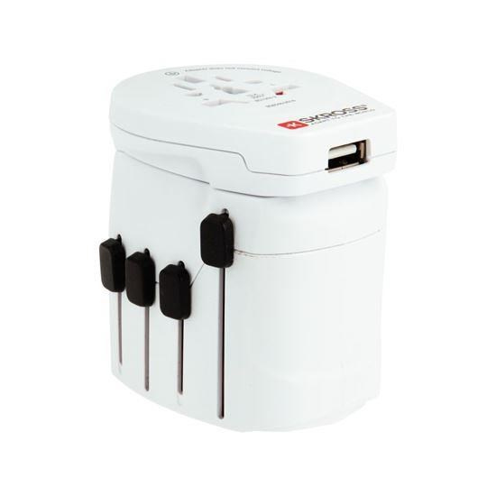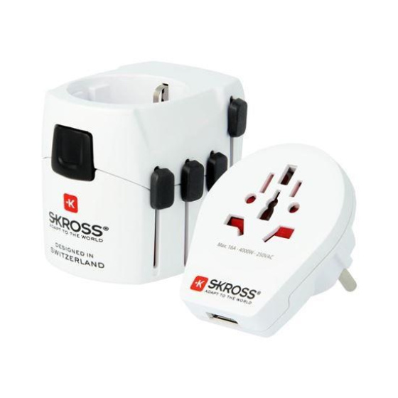 Popis SKROSS cestovní adaptér PRO World & USB, 6,3A max., uzemněný, vč. univerzální USB nabíječky, pro celý svět