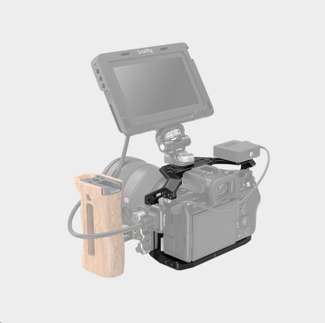 Můžete připevnit SmallRig 1984 Horní rukojeť nebo SmallRig 2093 Dřevěná horní rukojeť pro fotografování z ruky a SmallRig 3000 Svorka na kabel pro ochranu HDMI kabelu a portu.