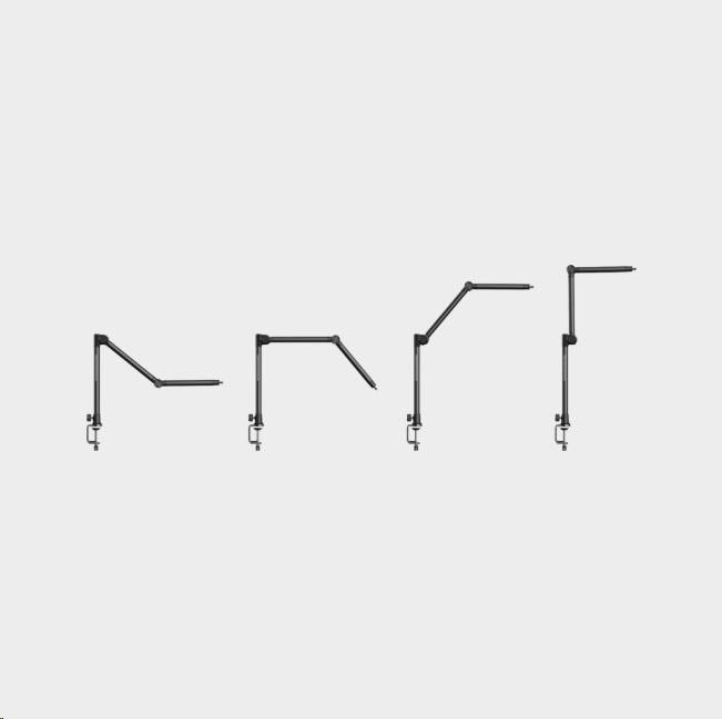 Třídílné rameno výložníku je spojeno hydraulickými tlumicími klouby, které umožňují zavěšení v libovolném bodě, zajišťují bezpečnost zařízení tím, že zabraňují náhlému uvolnění a zároveň umožňují přesné nastavení úhlů natáčení.