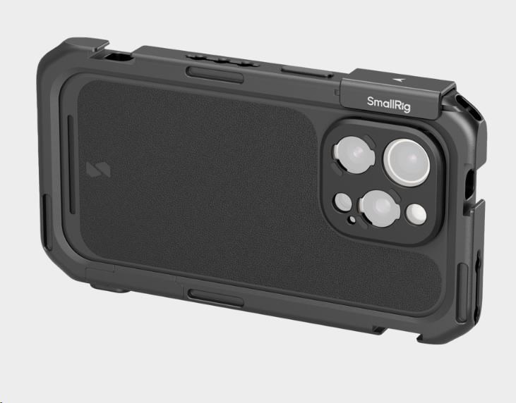 Telefon lze rychle upevnit do klece, která je vybavena několika otvory s 1/4"-20 závitem proti otočení a úchyty pro studenou patku, a rozšířit ji tak o příslušenství, jako jsou rukojeti, stativy, mikrofony a světla, což zvyšuje zážitek z fotografování, zatímco integrované rychloupínací rozhraní zajišťuje bezproblémové připojení.