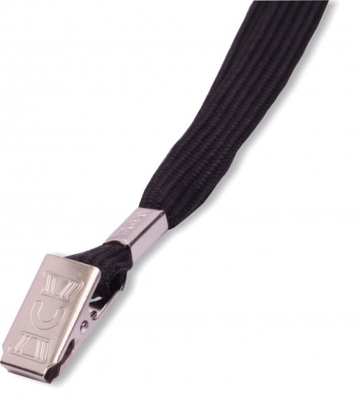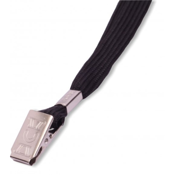 Šňůrka na krk s klipsem pro uchycení visačky. Lze použít na visačku s vyděrovaným podélným otvorem nebo se závěsem. Šířka 10 mm, délka 90 cm..