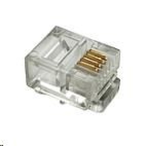 Nestíněný konektor RJ 11 pro připojení telekomunikačních zařízení, 6p4c. Pro vodič licna a plochý kabel. Konektory Solarix typu RJ11 jsou spolehlivé komponenty, které jsou konstrukčně uzpůsobeny tak, aby bylo zajištěno bezchybné spojení mezi kontakty konektoru a měděnými vodiči datového kabelu. V případě konektorů RJ12 a RJ11 je krytí zlatem 15 µ a tyto konektory jsou určeny především pro oblast telekomunikací. Konektory jsou baleny po 100 ks.