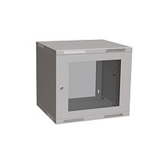 Nástěnný skládaný rozvaděč SENSA 9U se skleněnými dveřmi, hloubka 450 mm.