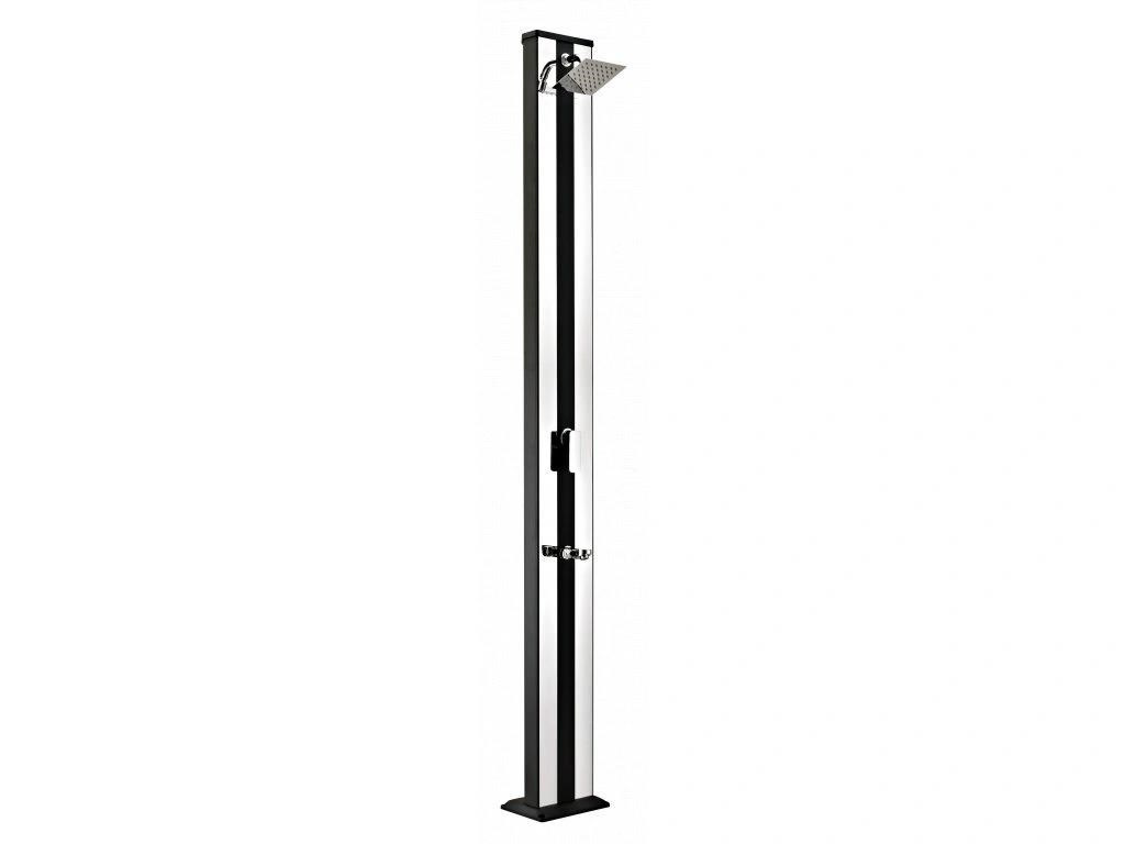 Hliníková solární sprcha s XXL zásobníkem o objemu 38 l a velkou sprchovací hlavicí, která zajišťuje příjemné sprchování připomínající lehký letní deštík. Sprcha je vyrobena z hliníku a nerezu, má kovovou pákovou baterii a je vysoká 218 cm. Je vybavena praktickým kohoutkem na oplach nohou. Celkově je sprcha velmi kvalitně zpracována a má luxusní vzhled. Připojení na přívod vody je velmi jednoduché pomocí hadicové rychlospojky (součástí balení).