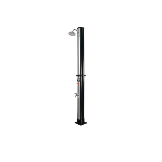 Rodinami oblíbená solární sprcha s XXL zásobníkem o objemu 40 l a velkou sprchovací hlavicí, která zajišťuje příjemné sprchování připomínající lehký letní deštík. Sprcha je vyrobena z kvalitního PVC odolného vůči UV záření. Elegantní vzhled sprchy podtrhuje čelní část imitující nerez. Sprcha je vysoká 220 cm a je vybavena praktickým kohoutkem na oplach nohou. Připojení na přívod vody je velmi jednoduché pomocí hadicové rychlospojky (součástí balení).