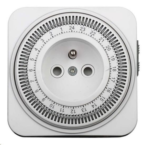 rozpětí 24hod., min. časový úsek 15min. přepínač zapnuto/automatické spínání mechanický dětské pojistky 230V/16A, 50Hz.