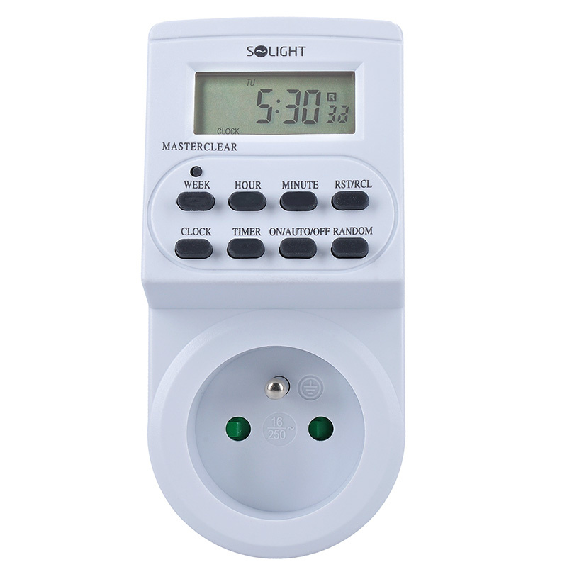 Nabízí 16 kombinací pro nastavení dnů či skupin dní, a díky funkci letního času máte jistotu, že čas bude vždy aktuální. Pro zvýšení bezpečnosti disponuje i možností náhodného spínání (10–31 minut v časovém rozmezí 6:00 až 18:00 hod), což je ideální pro simulaci přítomnosti v domácnosti.