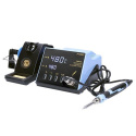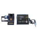 Páječka s LED displejem pro přesné pájení, která zobrazuje nastavenou a aktuální teplotu. Rychlé zahřátí do 8 sekund a výkon 70 W s rozsahem teploty 160 °C–480 °C. Automatický spánkový režim po 10 minutách nečinnosti, který sníží teplotu na 200 °C. Ergonomický design s flexibilním silikonovým kabelem a stojánkem pro bezpečné odkládání. Kalibrace teploty a čisticí houbička pro snadné čištění. Bezpečnostní funkce zahrnují ochranu před přehřátím. Napájení 220–240V, 50Hz, délka napájecího kabelu 1,35m.