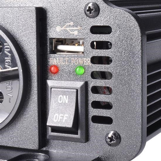 Popis Solight invertor 12V, USB 500mA, kovový, černý, max. zatížení: 300W