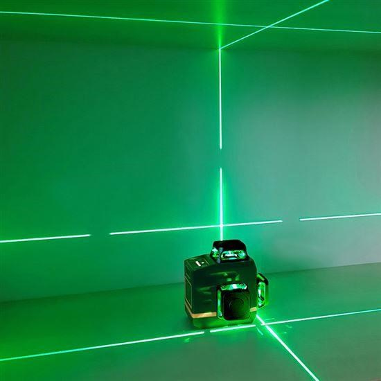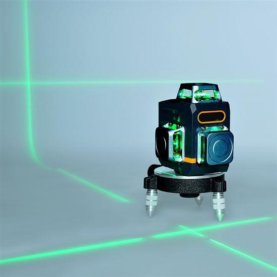 Profesionální laserová vodováha se zeleným laserem, 12 linií v rozsahu 360°, 1x horizontální a 2x vertikální paprsek, samonivelační režim nebo režim libovolného úhlu, dosah paprsku: až 30m, pracovní doba: až 30 hodin, kontrolka indikující dosažení vodorovné hladiny.Více