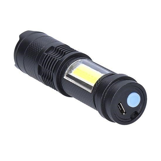 Solight LED nabíjecí kapesní svítilna se zoomem, 100lm + 70lm, Li-Ion, USB, černá