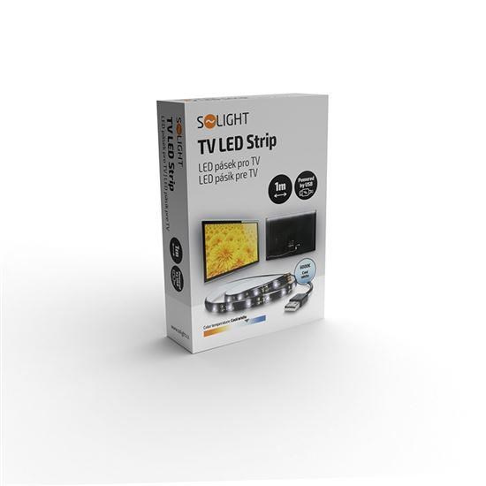 Popis Solight LED pásek pro TV, 100cm, USB, vypínač, studená bílá