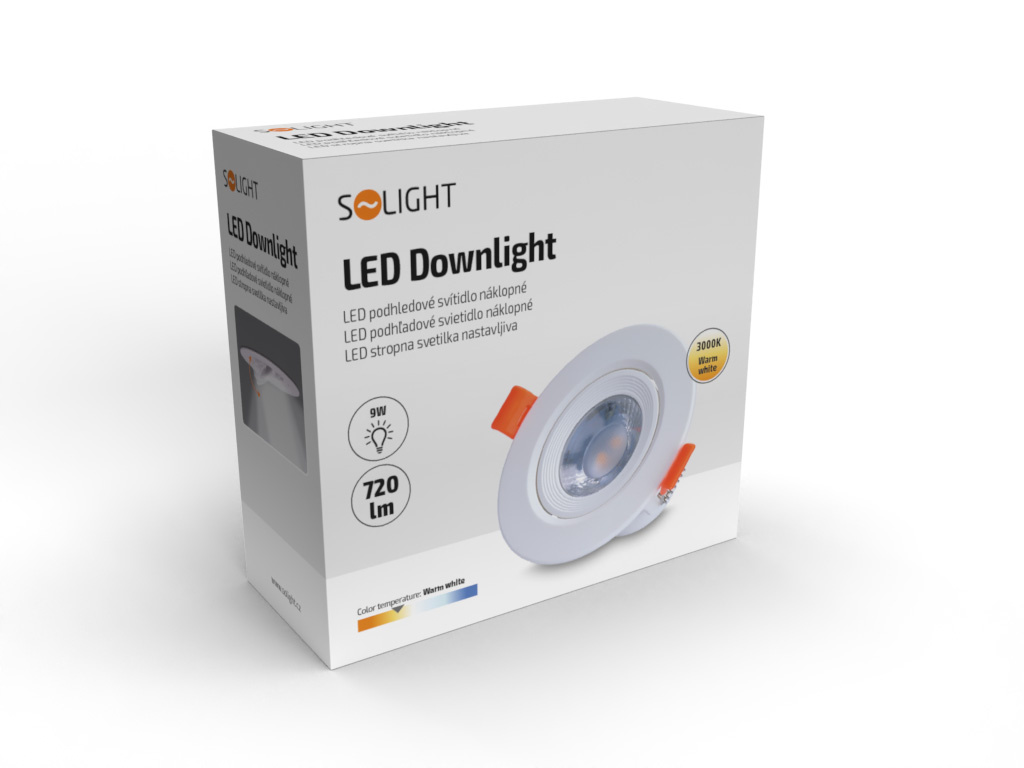 LED podhledové bodové svítidlo náklopné, světelný zdroj: 5W LED SMD, světelný tok: 400lm, teplota chromatičnosti: 3000K (teplá bílá), životnost LED: 20.000 hodin, úhel svícení: 38°, index podání barev Ra: >80, materiál: hliník + PC.Více