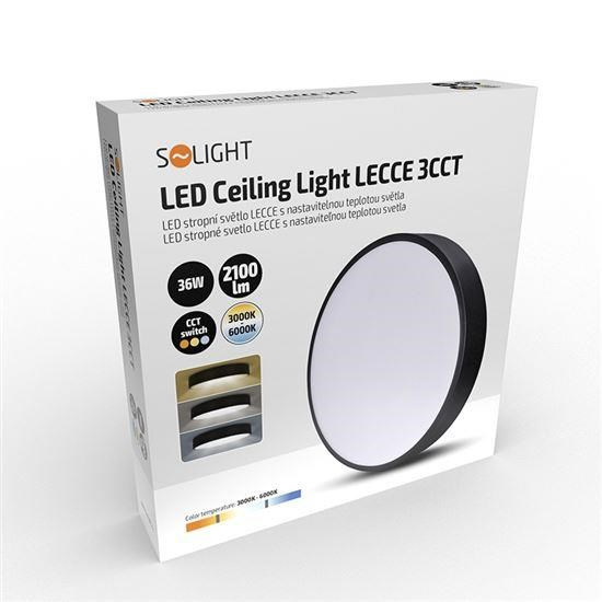 Popis Solight LED stropní osvětlení LECCE, 3CCT, 36W, 2100lm, 30cm, 3000/4000/6000K, černá