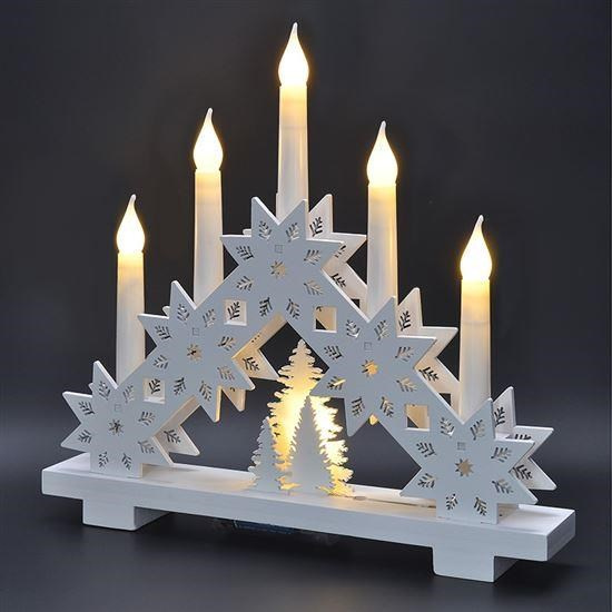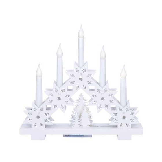 LED vánončí dřevěný svícen s dekorem hvězd, počet LED diod: 5, počet svící: 5, barva světla: teplá bílá (žlutá), napájení: 2 x AA baterie (nejsou součástí), výdrž baterií: cca 100hodin (v závislosti na kvalitě baterií), stupeň krytí: IP20 (vnitřní použití).Více