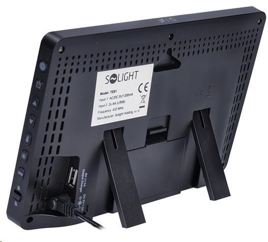 Popis Solight TE81 meteostanice, extra velký barevný LCD, teplota, vlhkost, tlak, RCC, USB nabíjení, černá