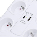 Solight přepěťová ochrana, 8z, USB A+C, 2m, bílá