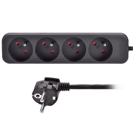 Praktický černý prodlužovací kabel s délkou 3 metry a čtyřmi zásuvkami umožní přivést elektrickou energii tam, kde není k dispozici pevná zásuvka. Ideální pro domácí i kancelářské využití.