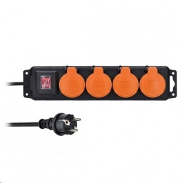 gumový kabel počet zásuvek: 4 průřez vodičů: 3 x 1,5mm2 typ kabelu: H05RR-F 3G přímá vidlice dětské pojistky barva: černá stupeň ochrany: IP44 délka: 5m 230V/16A, max. 3680W vypínač.