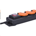 Solight prodlužovací přívod IP44, 4 zásuvky, gumový kabel, vypínač, venkovní, ,5m