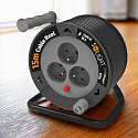 Klasický design upravený do malých rozměrů je stejně výkonný jako velké bubny pro střední zátěž, přesto i mnohem skladnější a snadněji přenositelný. Tři zásuvky s dětskými pojistkami jsou chráněny tepelnou pojistkou, která přeruší napájení v případě přetížení nebo při plném výkonu bez úplného odvinutí kabelu.