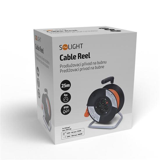 PVC kabel s vodiči o průřezu 3×1,5 mm2 je vhodný pro vnitřní a suché chráněné prostory. Buben je vybaven čtyřmi zásuvkami s dětskými pojistkami, navíc i tepelnou pojistkou, která přeruší napájení v případě přetížení nebo při použití bez úplného odvinutí kabelu. Barevné odlišení kabelu od okolního prostředí zvyšuje bezpečnost při práci.