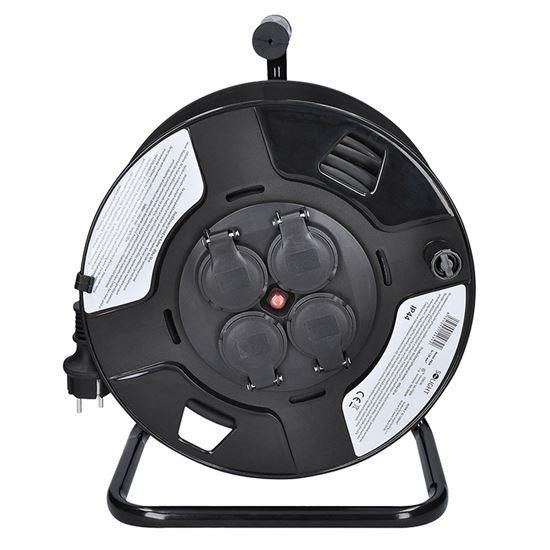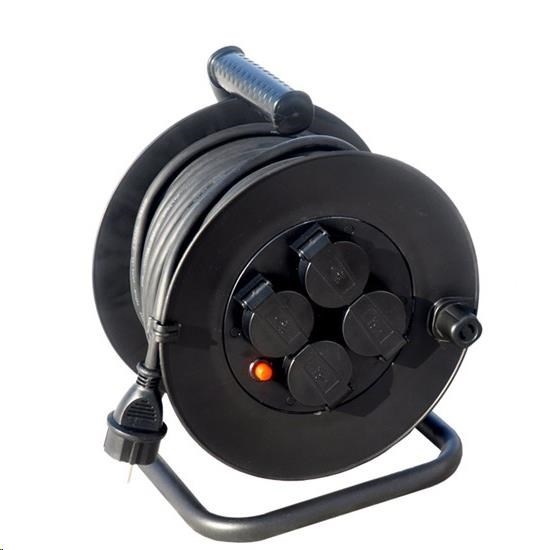 Gumový kabel s vodiči o průřezu 3×1,5 mm2 je vhodný pro venkovní použití i vnitřní prostory. Buben je vybaven zásuvkami s dětskými pojistkami a tepelnou pojistkou, která zajišťuje bezpečnost při přetížení nebo neúplném odvinutí kabelu. Produkt splňuje stupeň krytí IP44, který zajišťuje ochranu proti stříkající vodě.