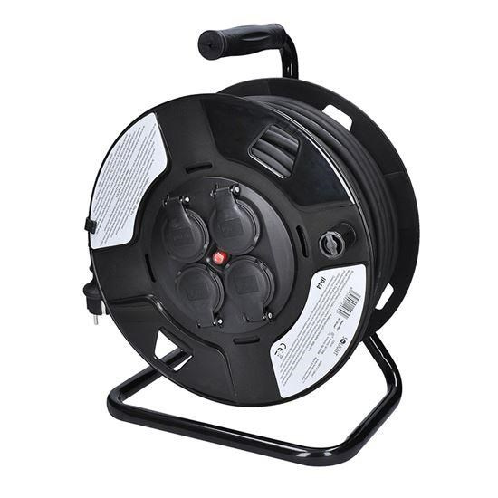 Prodlužovací kabel na navíjecím bubnu s délkou 50 metrů a čtyřmi zásuvkami je ideální pro použití venku, na stavbách nebo v dílnách. Gumový kabel zajišťuje odolnost proti povětrnostním podmínkám a mechanickému namáhání. Produkt je navržen pro bezpečné a spolehlivé připojení stavebních, zahradních i méně náročných průmyslových zařízení.