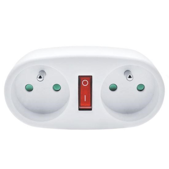 výstup 2 x 10A/230V =>max. 16A dětská pojistka barva: bílá vypínač.