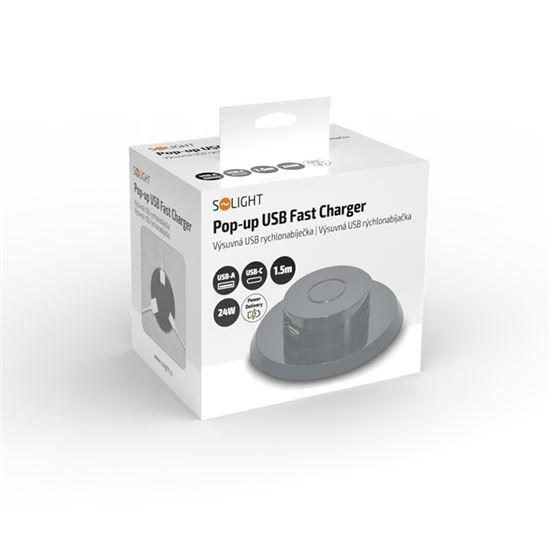 Popis Solight výsuvná nabíječka USB A+C 24W PD, černá