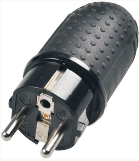 Popis Solight zástrčka gumová do vlhka, přímá, IP44, černá
