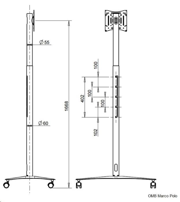 Popis Špičkový stojan na televizory a monitory 19-46", nosnost 30kg, OMB Marco Polo - držák