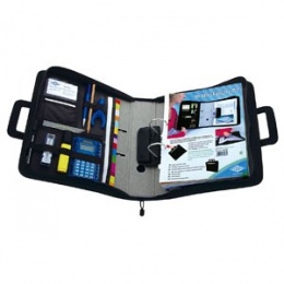 • Součástí spisovky jsou kapsy na vizitky, kapesní kalkulátor, tužky a další drobné potřeby