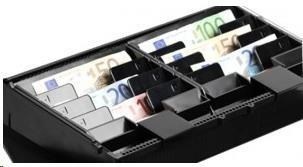 cash drawer, front opening, dimensions (WxHxD): 410x114x415mm, 8 note compartments (vertical), 8 coiVíce