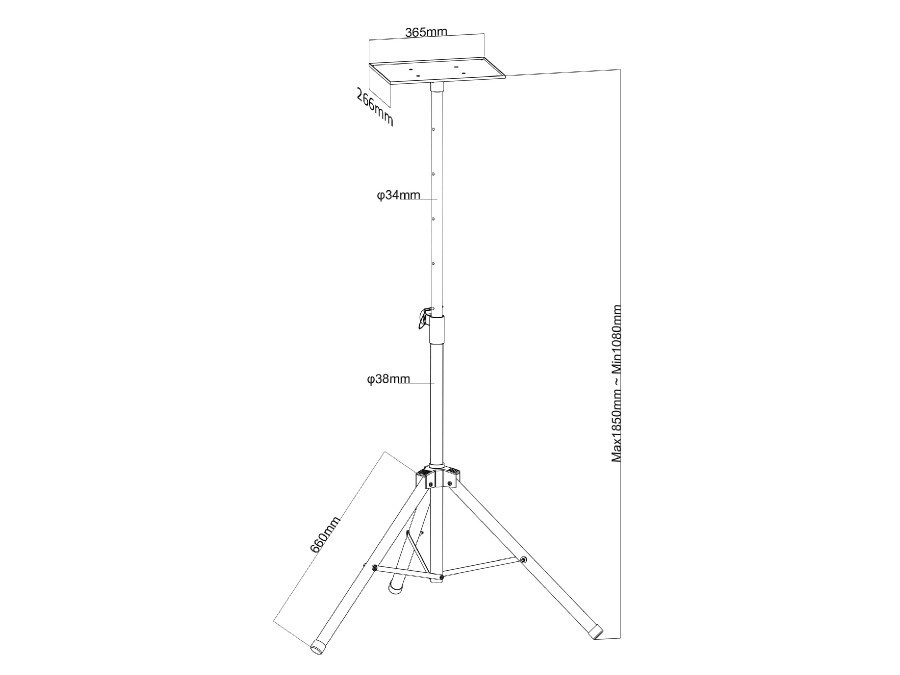 Stativ na projektory s nastavením výšky od podlahy 108-185cm, polička 365x266mm, nosnost 8kg.Více
