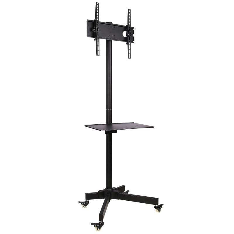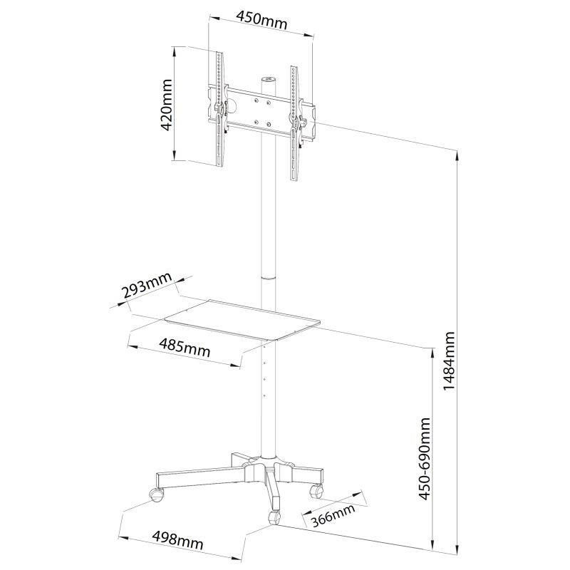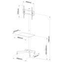 Stojan na televize i monitory 23-55", VESA 75x75 až 400x400, nastavení výšky 1000-1484mm, naklápění +/-15°, polička 485x293mm, kolečka s aretací, vedení kabelů, nosnost 25kg.Více