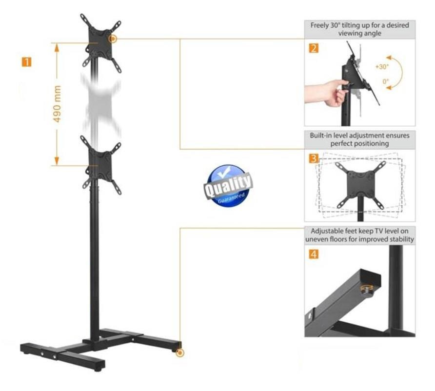 Stojan na Tv nebo monitory 13-43", nastavení výšky 75-124cm, nastavení náklonu 0° až 30°, VESA 75x75 až 200x200, nosnost 20kg.Více