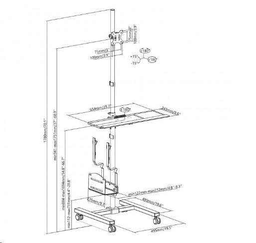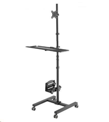 Pojízdný stojan na PC monitor a klávesnici Fiber Mounts AX793 Profesionální řešení pro Vaše mobilní PC pracoviště - mobilní stojan na PC Potřebujete si vytvořit pojízdné PC pracoviště za co nejlepší cenu? Máme pro Vás kompletní řešení za bezkonkurenční cenu - pojízdný stojan s držákem na PC, držákem na monitor a policí na klávesnici. Vše je přitom ergonomické - nastavitelná výška, náklon a natočení monitoru, nastavitelná výška klávesnice a myši, výškové nastavení držáku PC, pojezdová kolečka s aretací. Barevné provedení černé, záruka 3 roky. Stojan na PC s držákem monitoru a policí na klávesnici a myš - mobilní pojízdná PC pracovna -Fiber Mounts AX793 Technické údaje: držák na PC s výškovým polohováním, nosnost 8kg police na klávesnici a myš s výškovým polohováním, nosnost 2kg držák na monitor 17" až 32" s výškovým polohováním, nosnost 10kg držák monitoru podporuje VESA 75x75 a 100x100 / možnost rozšíření až na 200x200 otáčení monitoru do stran +/- 180° náklon monitoru +/- 15° rotace monitoru +/- 180° celková nosnost stojanu 20kg pojezdová kolečka s brzdou systém vedení kabeláže výborná kvalita barevné provedení černé záruka 3 roky Profesionální PC pracovna, pojízdná / mobilní - Fiber Mounts AX793 Stojan na PC, monitor a klávesnici s myší AX793 podporuje VESA standardy pro uchycení monitorů: VESA 75x75 VESA 100x100 v případě potřeby možnost zakoupení rozšíření na VESA 200x100 v případě potřeby možnost zakoupení rozšíření na VESA 200x200.