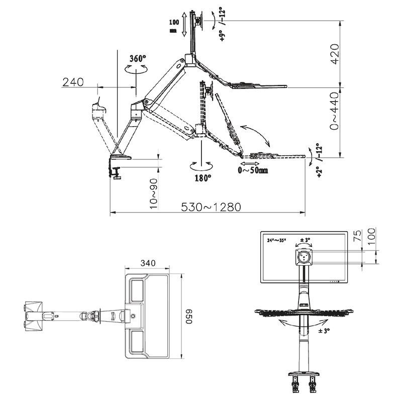Stolní kancelářský držák monitoru a klávesnice NB FC40B