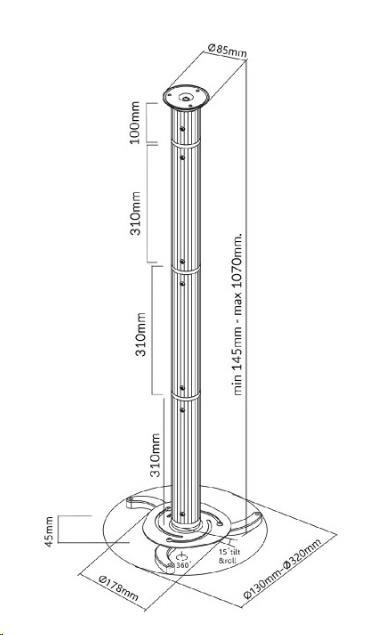 M5C17 je stropní držák na projektor s nastavení délky, otočný a sklopný, stříbrný, nosnost 10kg.Více