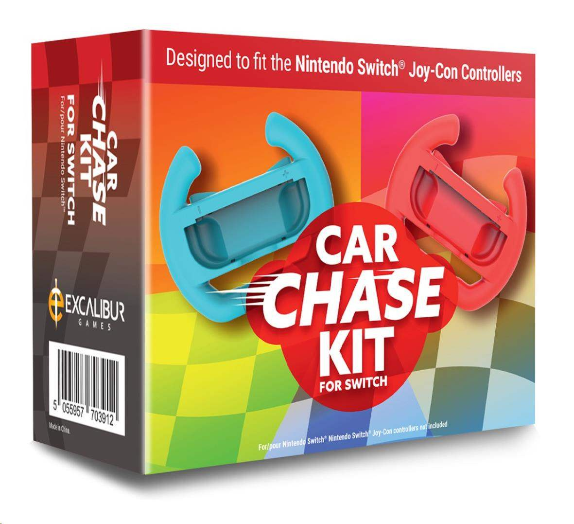 - Car Chase Kit – obsahuje 2x volant (1x neonově červený a 1 neonově modrý) jako doplněk pro ovladače Nintendo Switch™ Joy-Con.