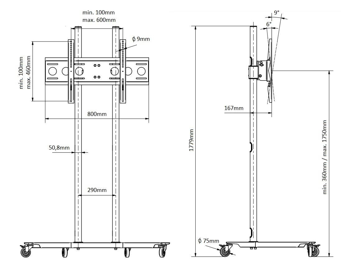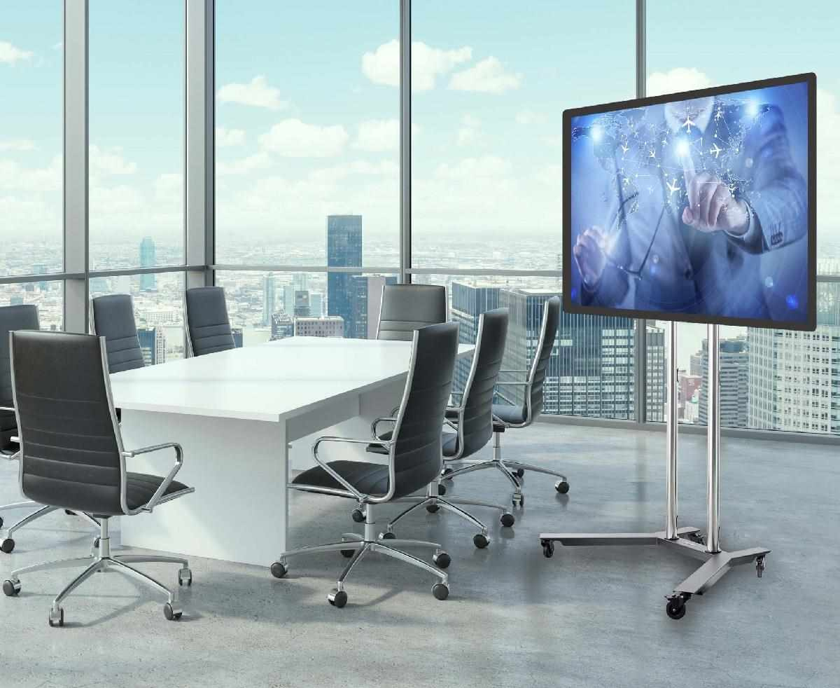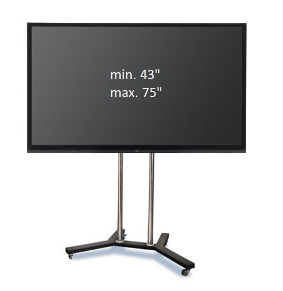 Stojan na Tv 43-75", ideální na videokonference a prezentace, nastavení výšky obrazovky 30-175cm, naklápění +6°/-9°, kolečka s aretací, vedení kabeláže, VESA 100x100 až 600x400, nosnost 80kg.Více