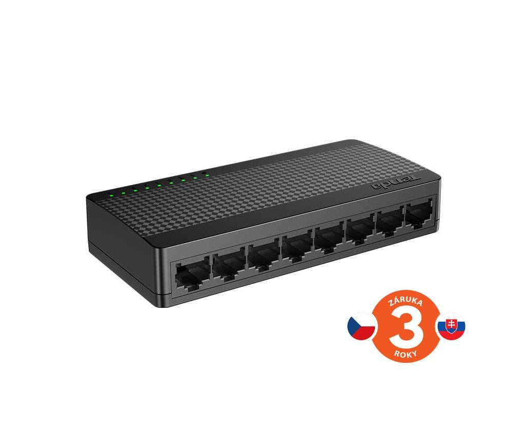 Tenda SG108M je miniaturním gigabitovým switchem s velmi nízkou spotřebou el. energie. Je ideální volbou pro připojení NAS serverů, herních konzolí, multimediálních TV, přehrávačů a PC. Díky automatickému přepínání rychlostí 10/100/1000Mb/s je plně kompatibilní s každým zařízením. Je určen pro použití v domácnostech a malých firmách.
