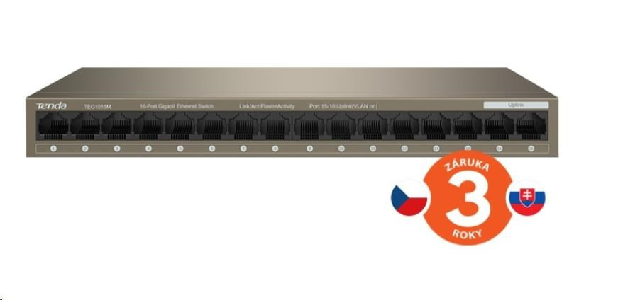 • Obsah balení: 1x Tenda TEG1016M, 1x Stručná instalační příručka (CZ, SK, PL), 1x Napájecí adaptér (12V DC, 1000 mA)