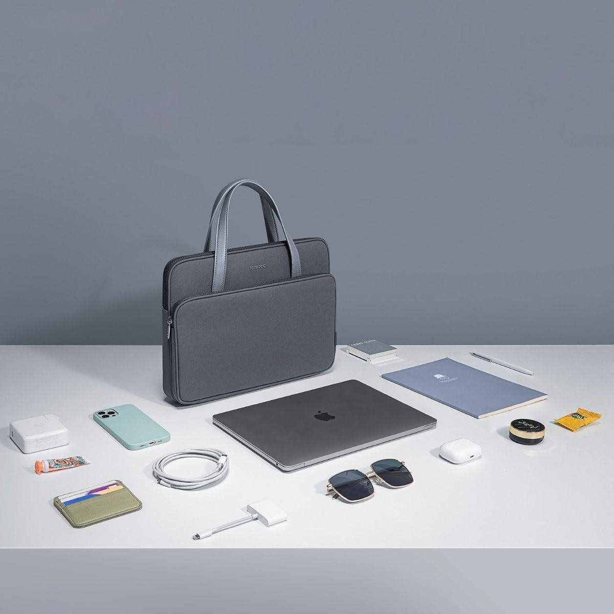 Brašna Tomtoc H21 nabízí do detailu promyšlený organizační systém. Čtyři velké flísem podšité kapsy poskytují dostatek prostoru nejen pro notebook či tablet, ale také pro všechno potřebné příslušenství a další osobní věci jako sluneční brýle, sešity či knihy. Přední magnetická přihrádka se dělí na několik menších kapes pro uložení drobných předmětů, dvě velké prostřední kapsy pojmou a ochrání vaše zařízení a další příslušenství a zadní magnetická kapsa poskytne možnost uložení mobilu, peněženky a dalších cenností, ke kterým potřebujete mít zároveň neustále co nejsnadnější přístup.