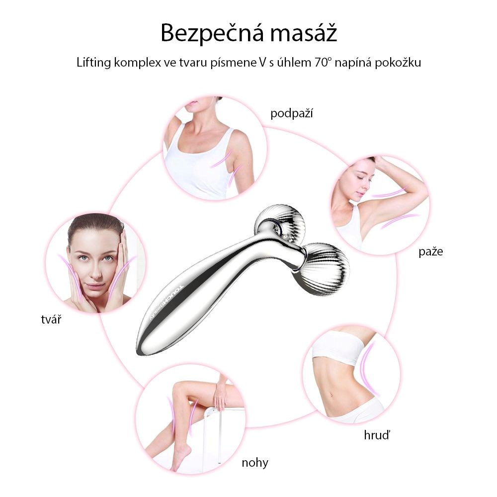 Unikátní válečky ve tvaru „V“ jsou navrženy pro masáž obličeje, ale stejně dobře je využijete na hrudník, paže nebo nohy. Ergonomický design zaručuje pohodlné používání a snadné držení, ať už jste doma, nebo na cestách.
