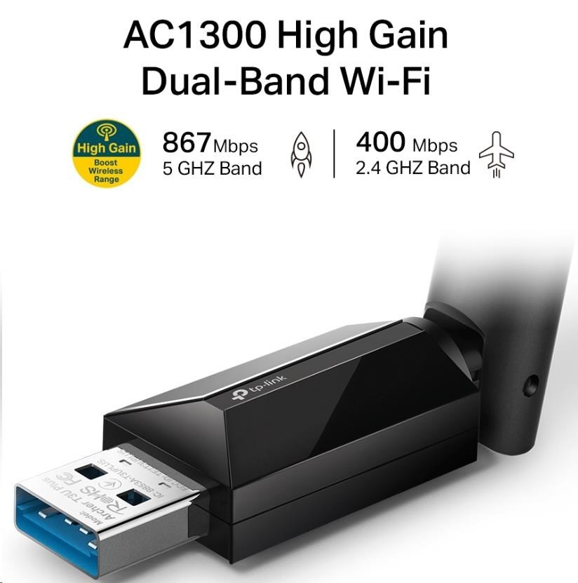 Archer T3U Plus přijímá signály Wi-Fi ve dvou samostatných pásmech pro všechny vaše online potřeby. Vyberte si pásmo 2,4 GHz s rychlostí až 400 Mb/s pro surfování, e-maily a sociální média, nebo přepněte na pásmo 5 GHz s rychlostí až 867 Mb/s pro hraní her, streamování v HD a stahování velkých souborů.