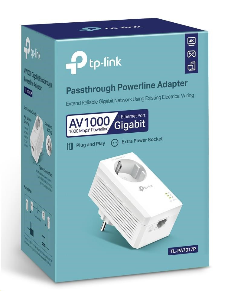 Adaptér TL-PA7017P s pokročilou technologií HomePlug AV2 nabídne uživatelům vysokorychlostní přenos dat dosahující až 1 000 Mbit/s, který je ideální pro činnosti náročné na šířku pásma, jako je souběžné streamování videa v rozlišení HD / 3D / 4K, hraní her online a přenos velkých souborů.