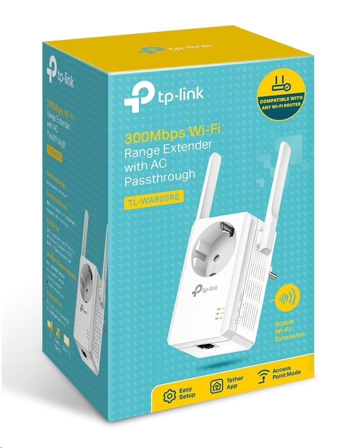 | Package Contents | 300Mbps Wi-Fi Range Extender with AC Passthrough TL-WA860RE RJ-45 Ethernet Cable Resource CD Quick Installation Guide |