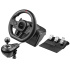Součástí zařízení je manuální převodovka a modul s pedály – plynem, brzdou a spojkou, které společně vytvářejí autentický pocit řízení jako ve skutečném voze. Díky perforovanému gumovému povrchu volant skvěle padne do ruky a při rychlých manévrech neklouže. Pro ještě větší pohodlí je možné zařízení připevnit pomocí přísavek, což zajistí stabilitu i při intenzivním hraní. Tlačítka pro ovládání a 8směrný analogový D-pad jsou chytře umístěné přímo na volantu pro okamžitou reakci během závodu.